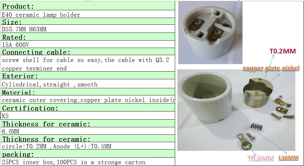 E40 ceramic lamp holder full thread + metal ring+bracket/Set-screw terminal [certification NO.]:KS C 8302
